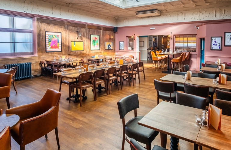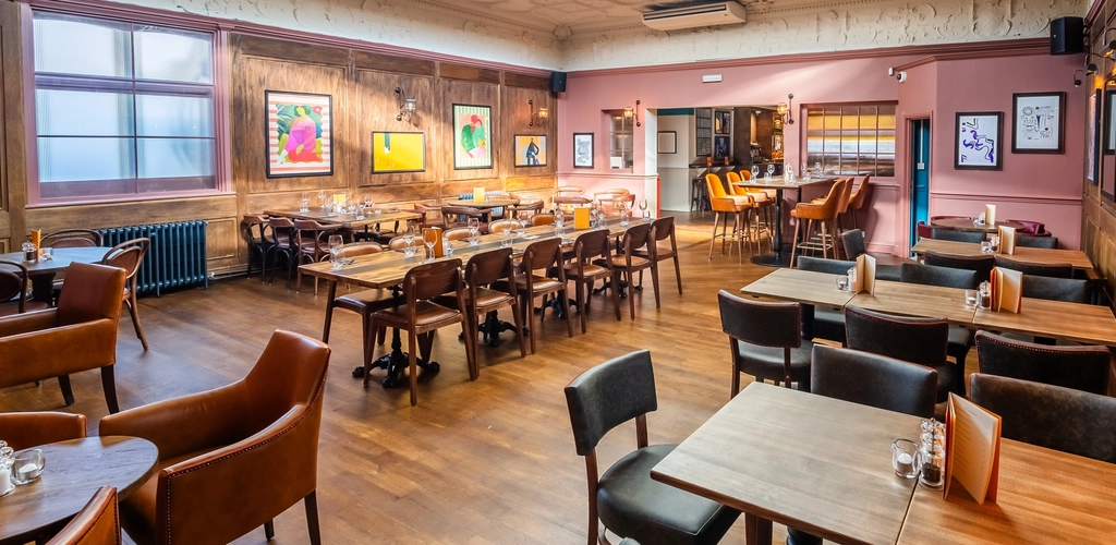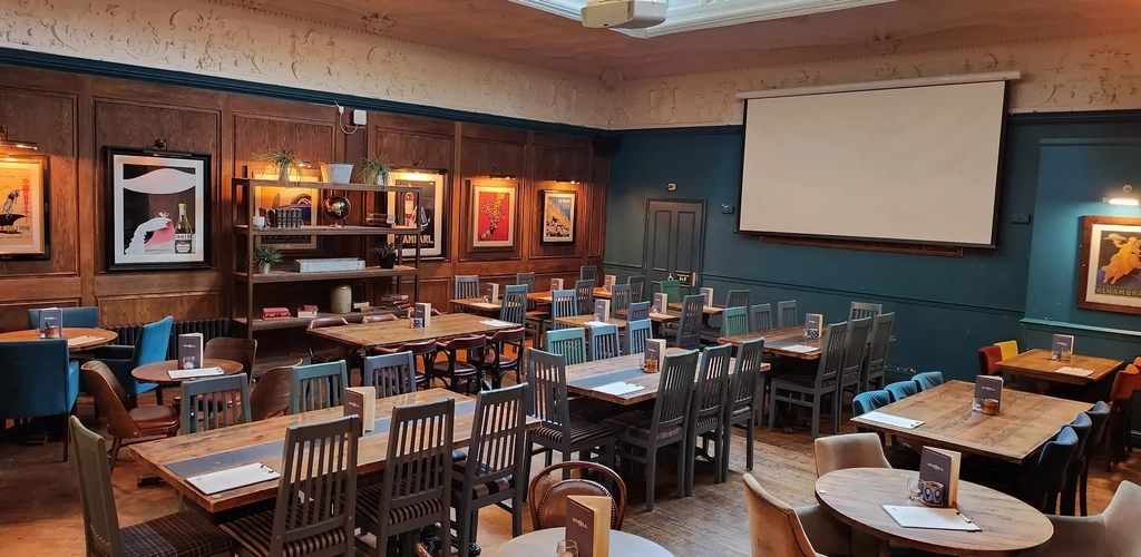 64 Seated - 100 StandingOur semi-private function room is designed with adaptability in mind, making it suitable for a wide range of events. From intimate gatherings to professional meetings, the room’s flexible seating and table arrangements allow you to customise the space to your exact requirements. The large drop-down screen and projector provide the perfect setup for presentations, screenings, or any media needs, adding a professional touch to business functions or a unique twist to social events. Whatever your vision, our function room offers a stylish and practical backdrop for your next event.